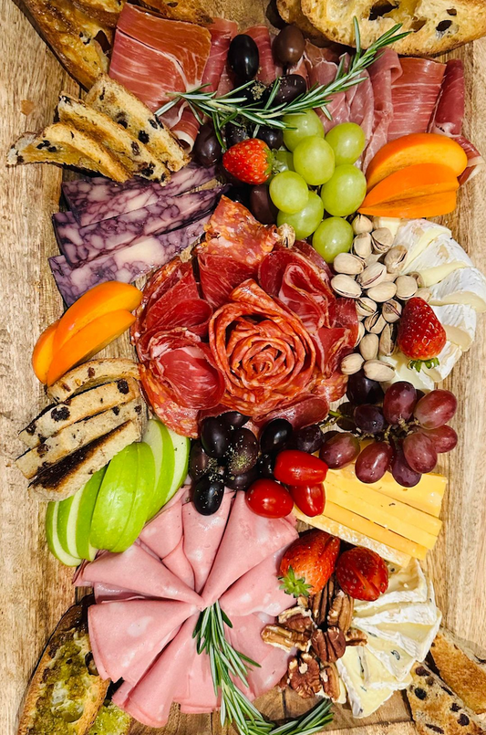 Explore our platters!Indulge in the art of culinary craftsmanship with our exquisite charcuterie and bouché platters, meticulously curated to showcase a delightful assortment of fine cured meats, artisanal cheeses, and delectable bite-sized delicacies.
